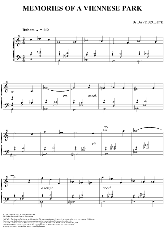 "Memories of a Viennese Park" Sheet Music by Dave Brubeck