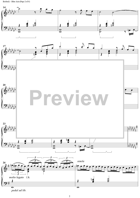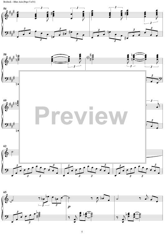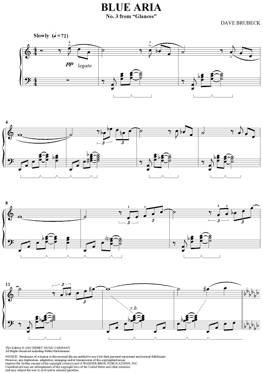 Digital Sheet Music for No. 3: Blue Aria by Dave Brubeck scored for Piano Solo; id:295056