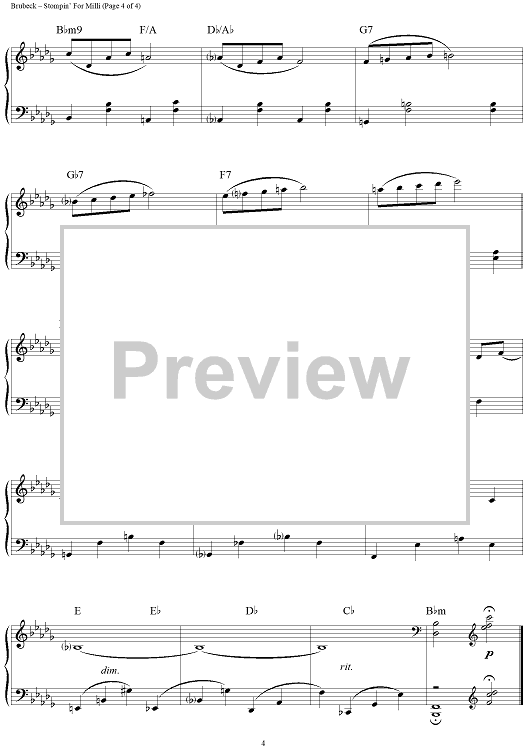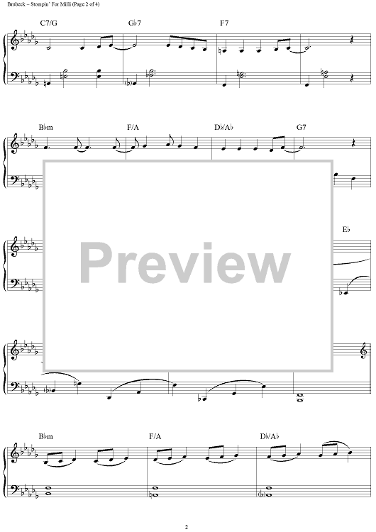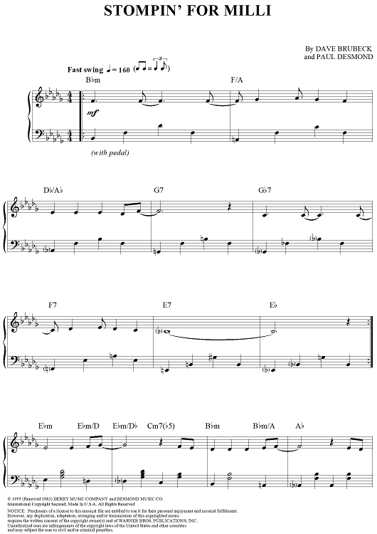 Digital Sheet Music for Stompin' For Milli by Paul Desmond, Dave Brubeck scored for Piano Solo; id:275580