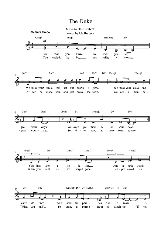 Digital Sheet Music for The Duke by Dave Brubeck scored for Lead Sheet; id:380704