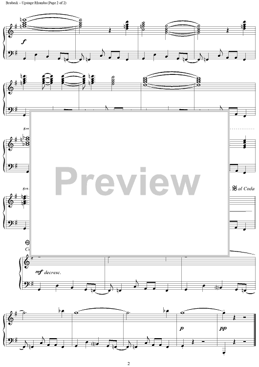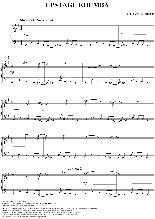 Digital Sheet Music for Upstage Rhumba by Dave Brubeck scored for Piano Solo; id:275928