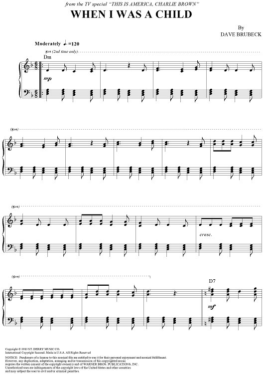 "When I Was a Child" Sheet Music by Dave Brubeck