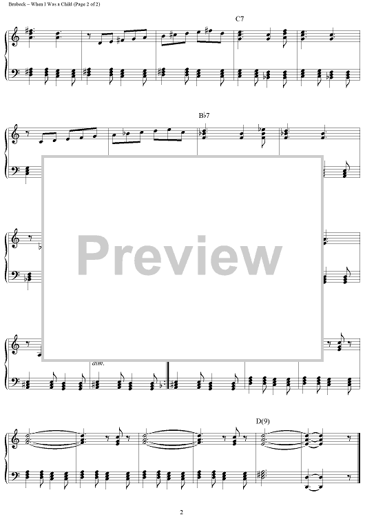 Digital Sheet Music for When I Was a Child by Dave Brubeck scored for Piano Solo; id:275818