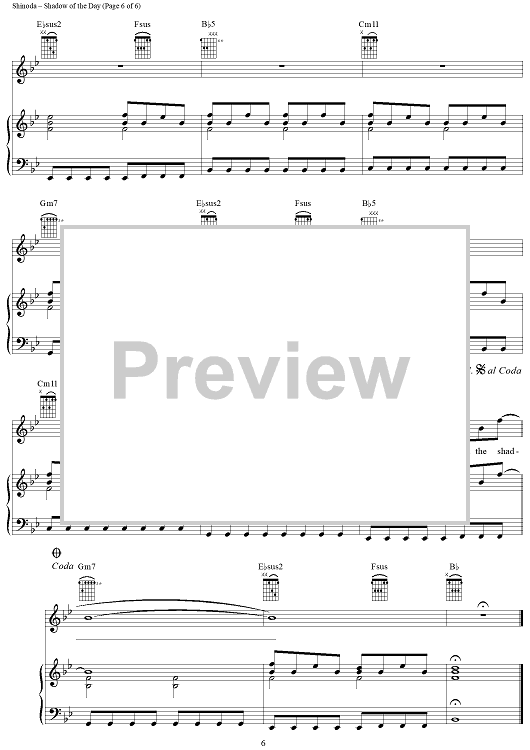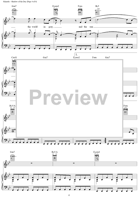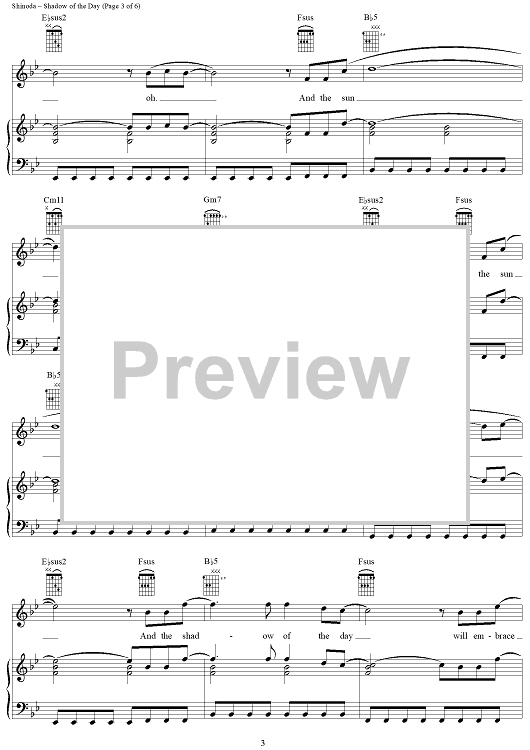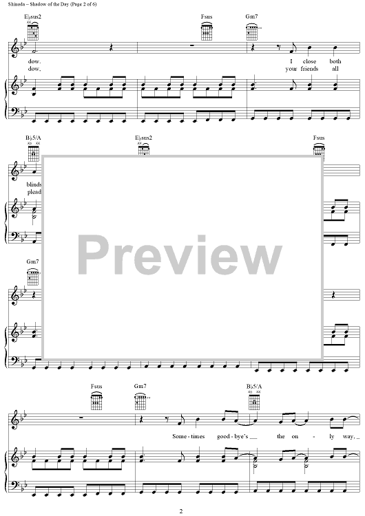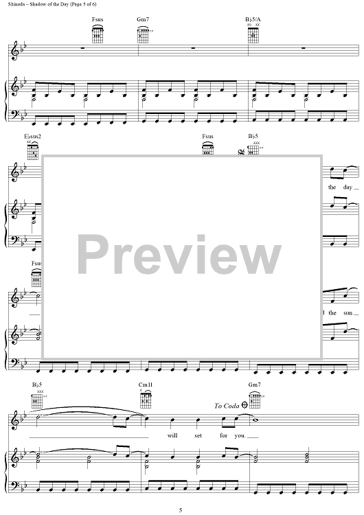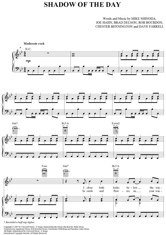 Digital Sheet Music for Shadow of the Day by Linkin Park, Dave Farrell, Mike Shinoda, Joe Hahn, Brad Delson, Rob Bourdon, Chester Bennington scored for Piano/Vocal/Chords; id:366972