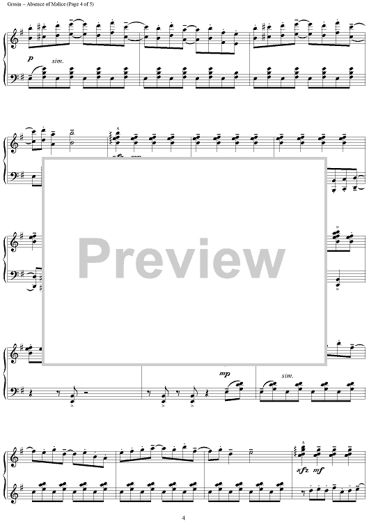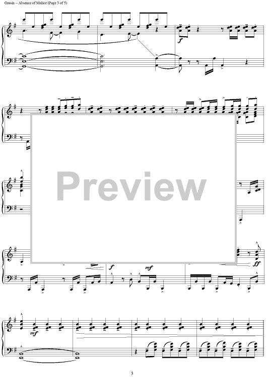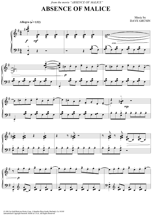 Digital Sheet Music for Absence of Malice by Dave Grusin scored for Piano Solo; id:268051