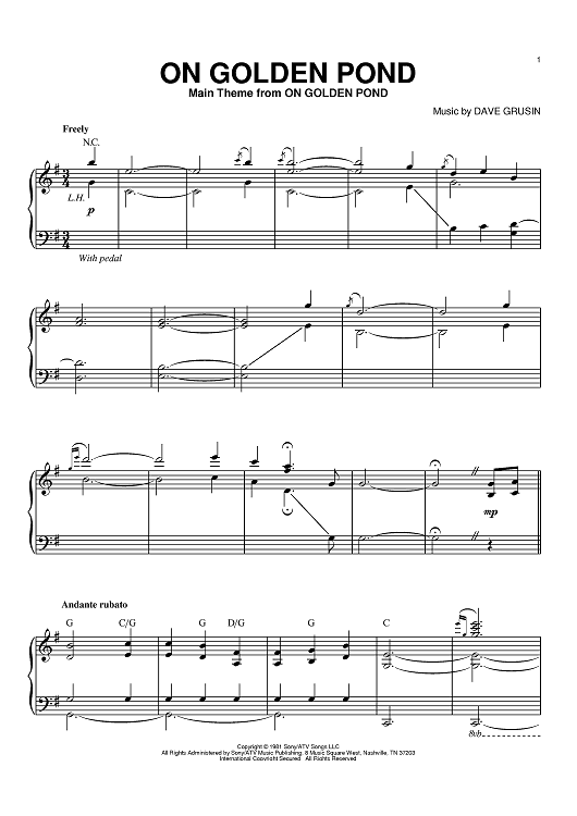 "On Golden Pond" Sheet Music by Dave Grusin