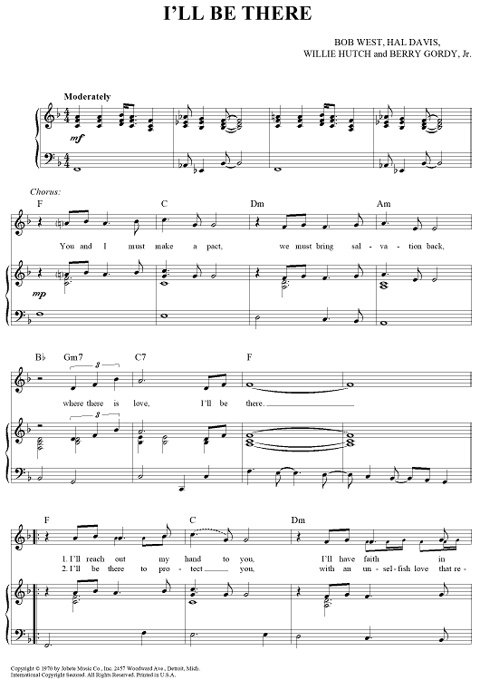 Digital Sheet Music for I'll Be There by Michael Jackson, Dave Koz, Berry Gordy Jr., Willie Hutch, Bob West, Hal Davis scored for Piano/Vocal/Chords; id:364061