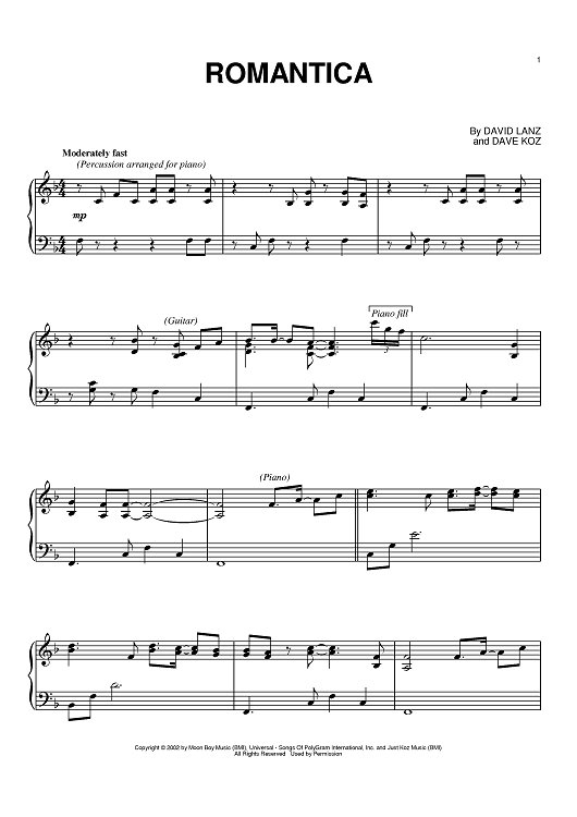 Digital Sheet Music for Romantica by Dave Koz, David Lanz scored for Piano; id:374833