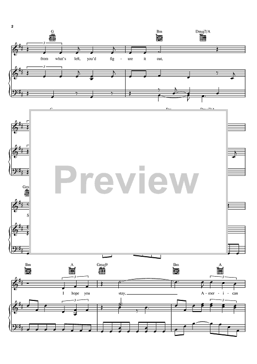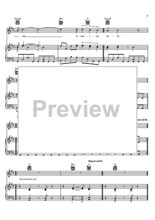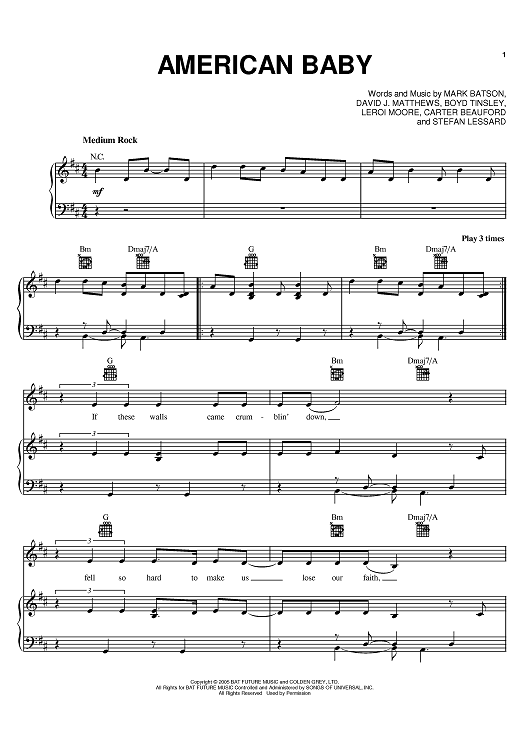 Digital Sheet Music for American Baby by Dave Matthews Band, Dave Matthews, Mark Batson, Carter Beauford, Stefan Lessard, Leroi Moore, Boyd Tinsley scored for Piano/Vocal/Chords; id:385220