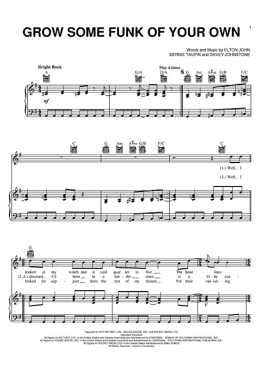 Digital Sheet Music for Grow Some Funk Of Your Own by Elton John, Bernie Taupin, Davey Johnstone scored for Piano/Vocal/Chords; id:392564