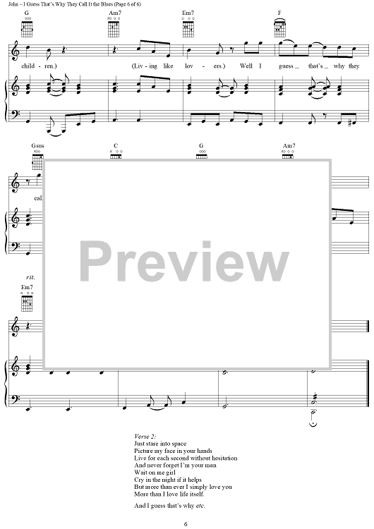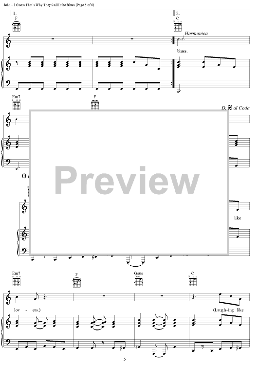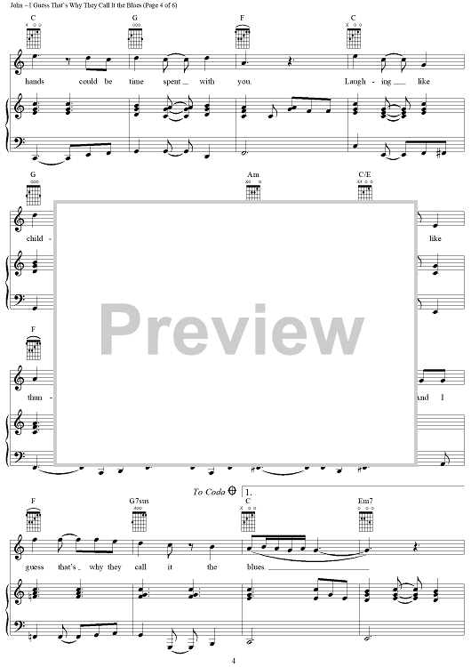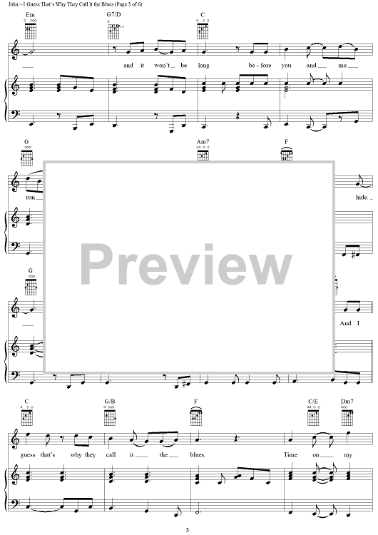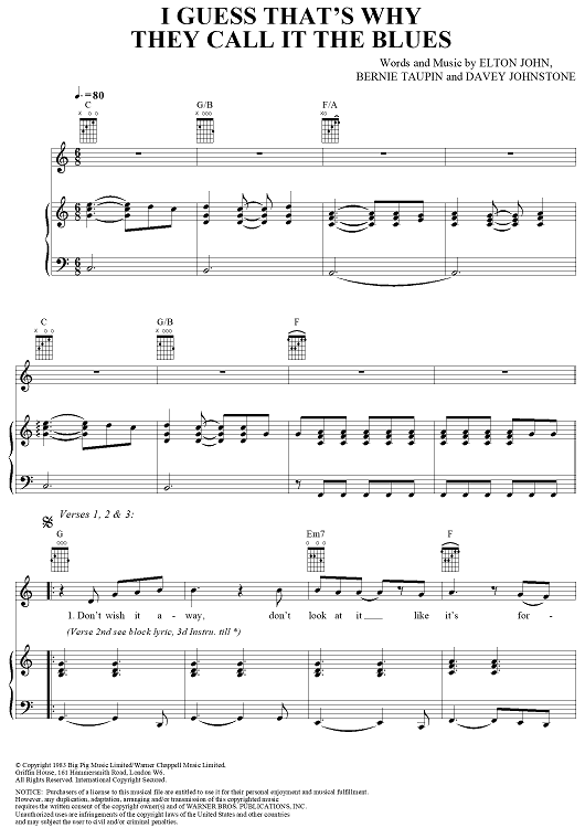 Digital Sheet Music for I Guess That's Why They Call It the Blues by Elton John, Bernie Taupin, Davey Johnstone scored for Piano/Vocal/Chords; id:285533