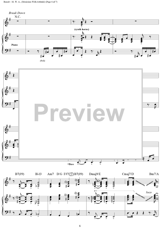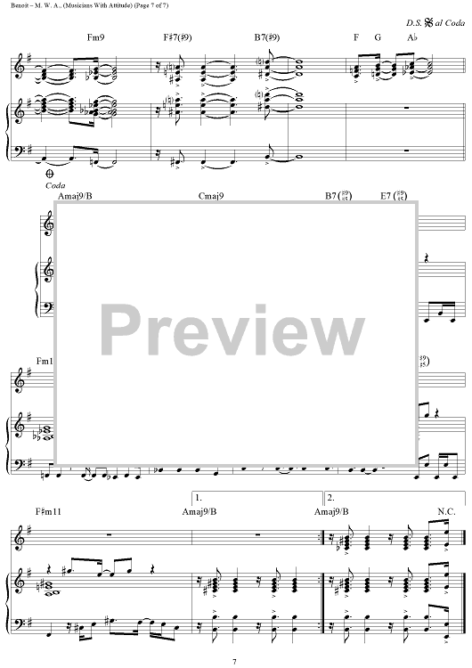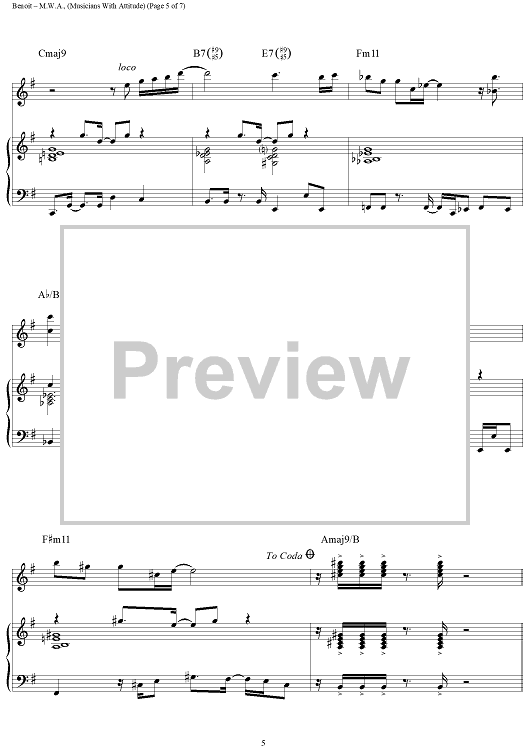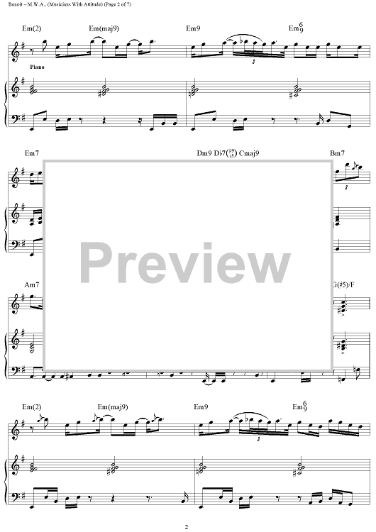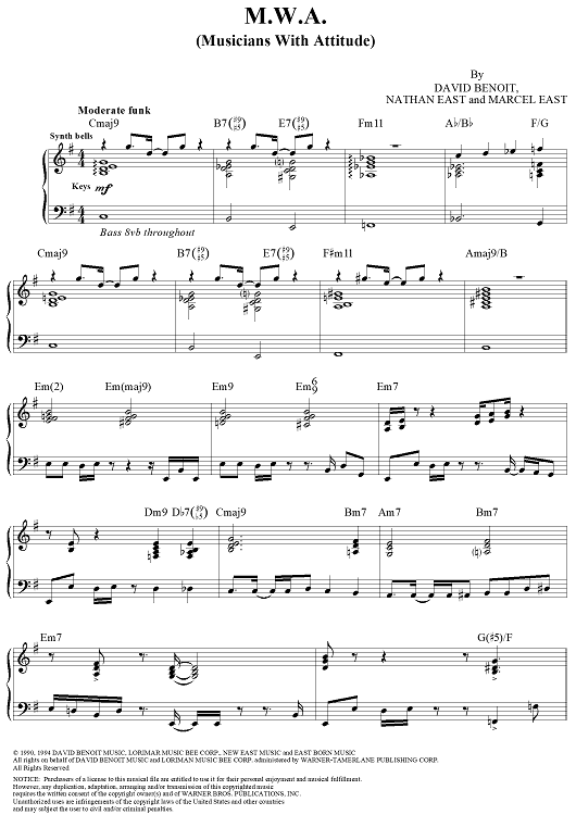 Digital Sheet Music for M.W.A. (Musicians With Attitude) by David Benoit, Nathan East, Marcel East scored for Piano Solo; id:275674