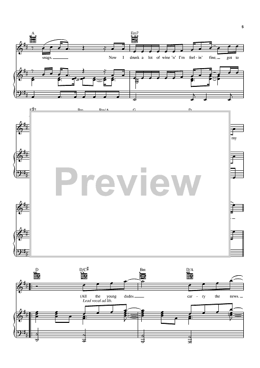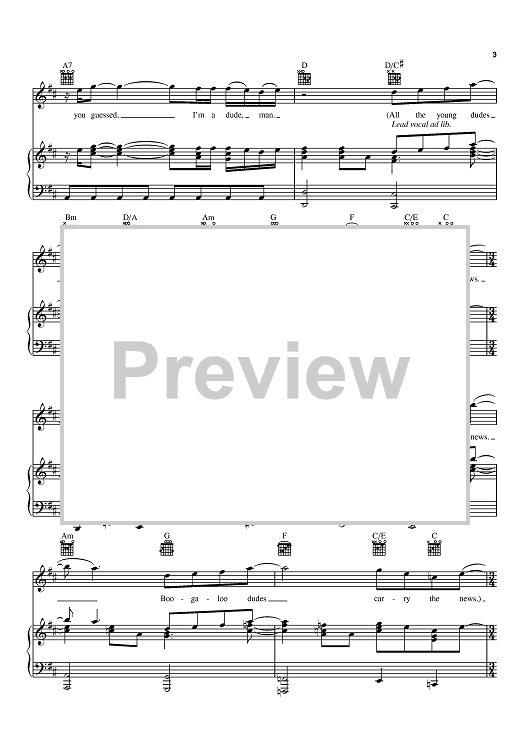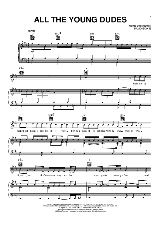 Digital Sheet Music for All The Young Dudes by David Bowie, Mott the Hoople scored for Piano/Vocal/Chords; id:395420