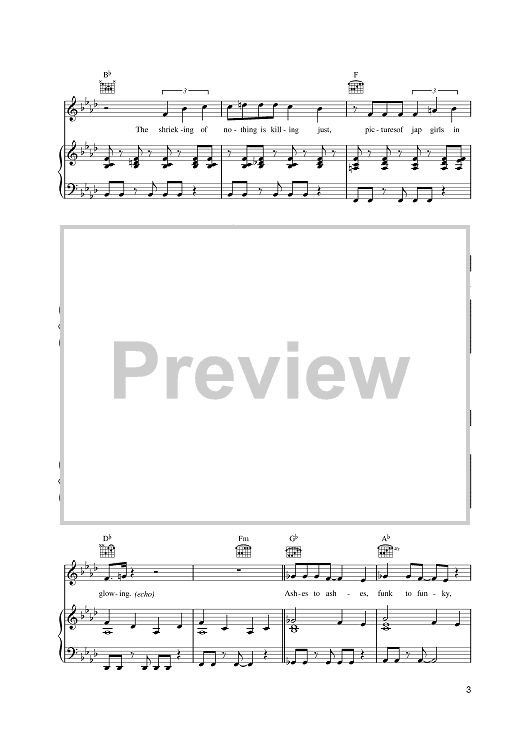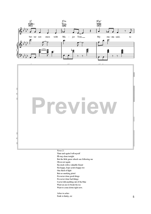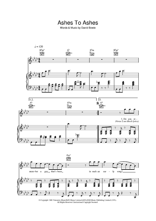 Digital Sheet Music for Ashes To Ashes by David Bowie scored for Piano/Vocal/Chords; id:393461
