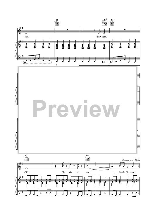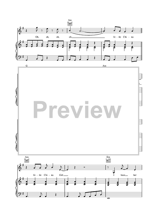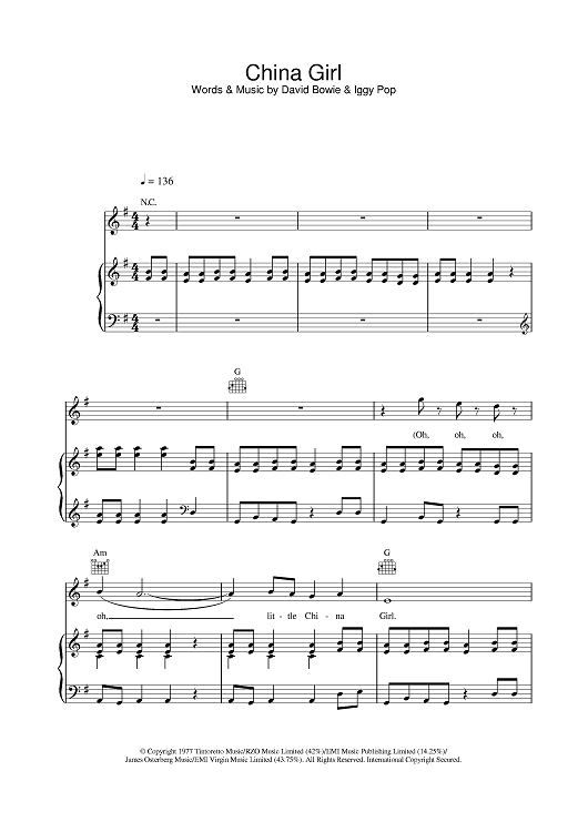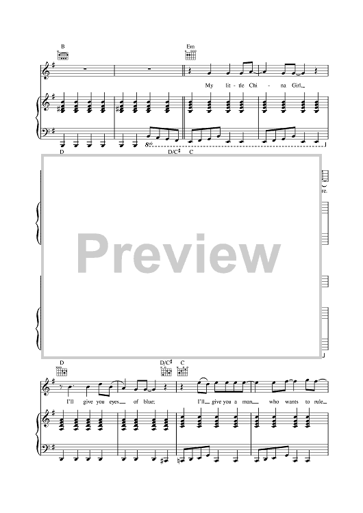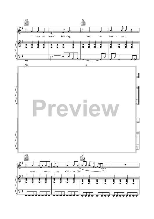 Digital Sheet Music for China Girl by David Bowie scored for Piano/Vocal/Chords; id:377350