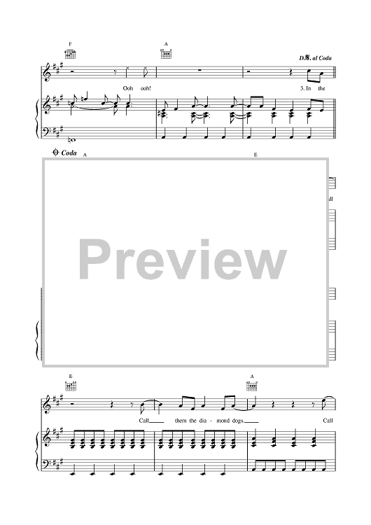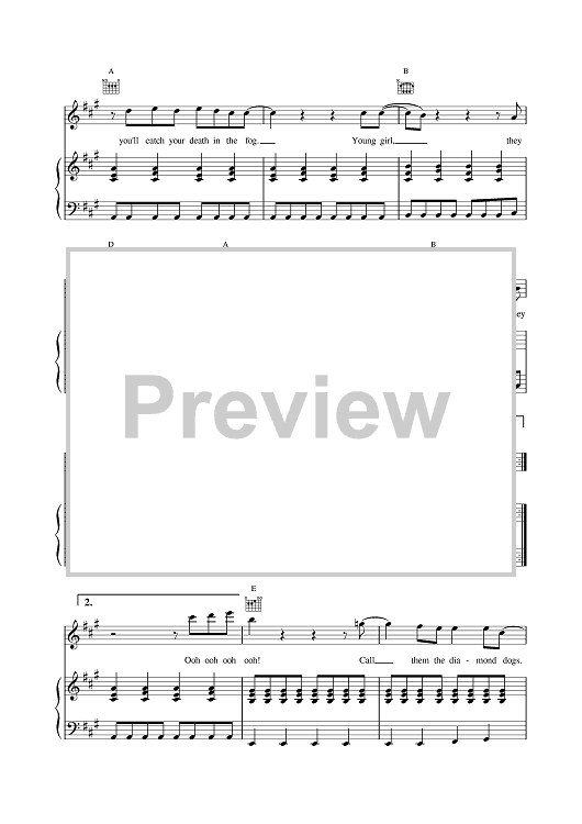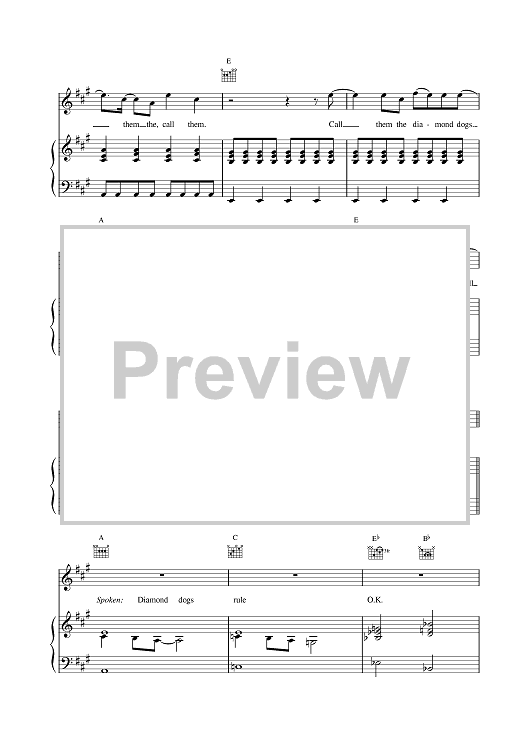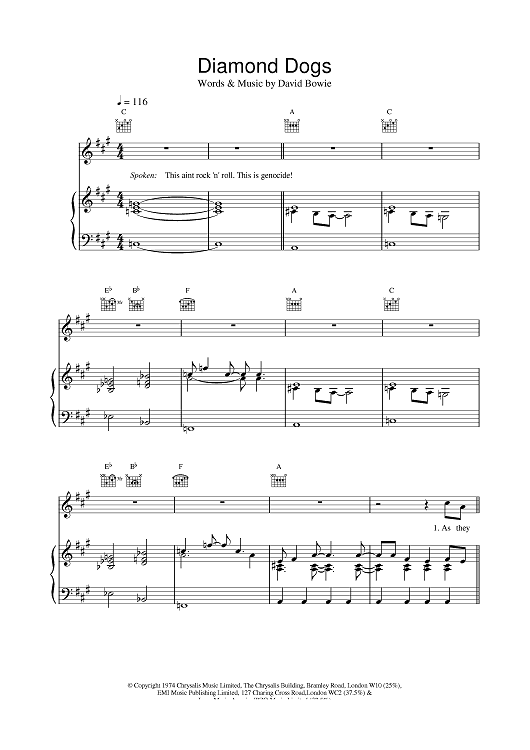Digital Sheet Music for Diamond Dogs by David Bowie scored for Piano/Vocal/Chords; id:376770