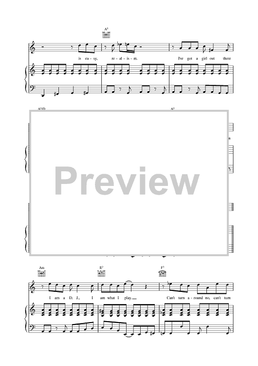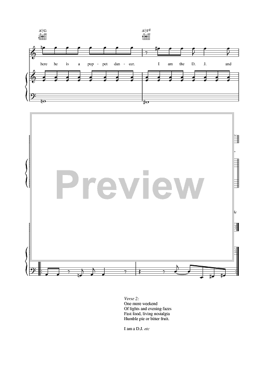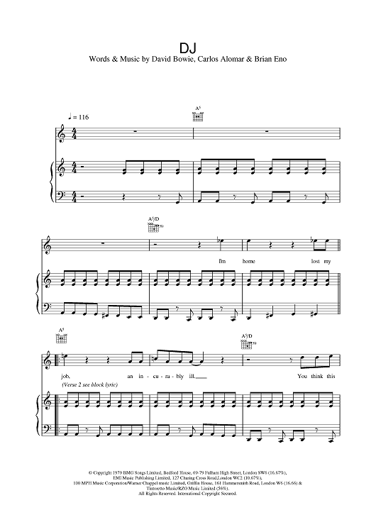 Digital Sheet Music for DJ by David Bowie scored for Piano/Vocal/Chords; id:379071