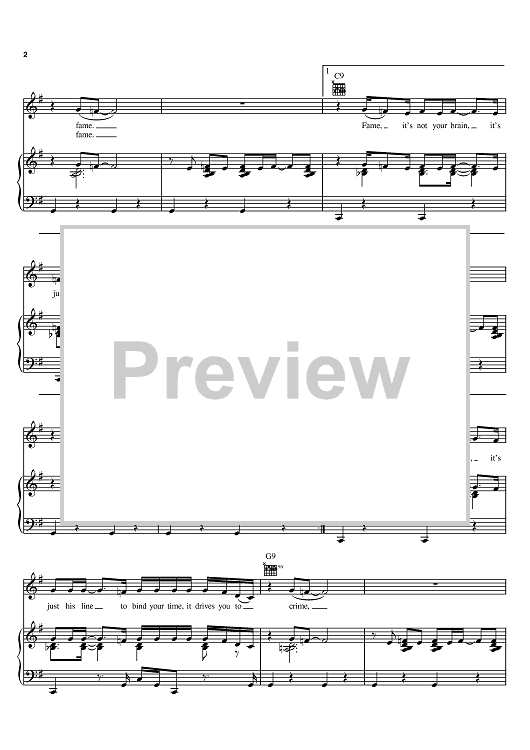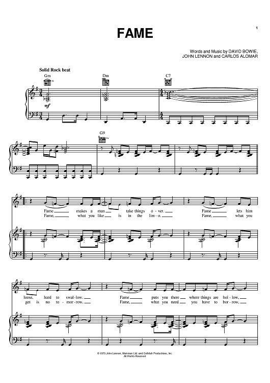 Digital Sheet Music for Fame by David Bowie, John Lennon, Carlos Alomar scored for Piano/Vocal/Chords; id:395404