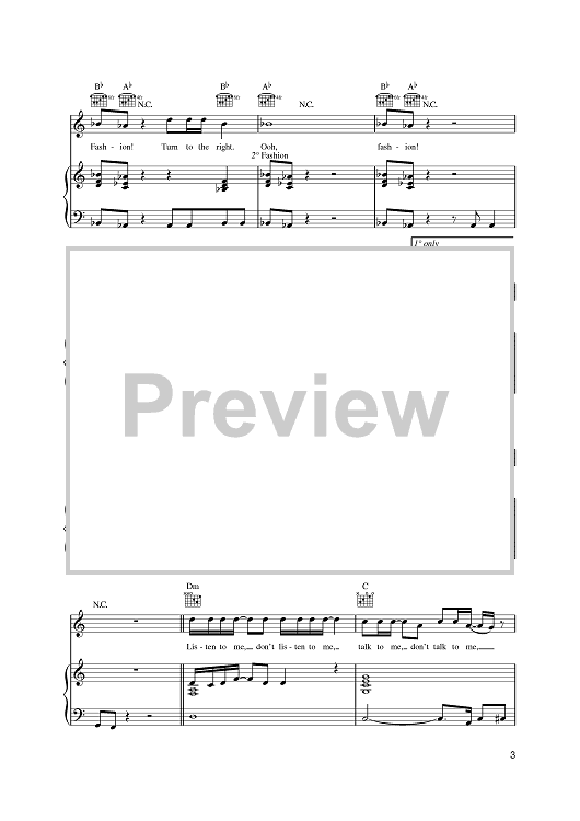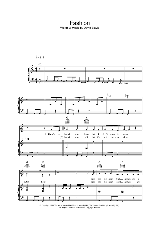 Digital Sheet Music for Fashion by David Bowie scored for Piano/Vocal/Chords; id:385518