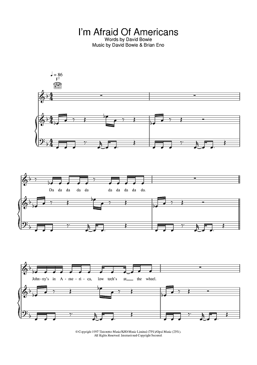 Digital Sheet Music for I'm Afraid Of Americans by David Bowie scored for Piano/Vocal/Chords; id:377919