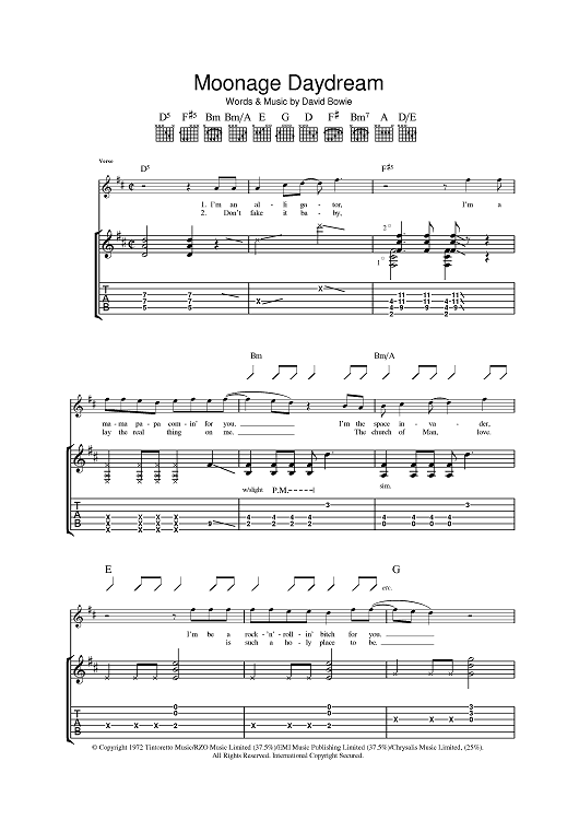 Digital Sheet Music for Moonage Daydream by David Bowie scored for Guitar Tab; id:396290