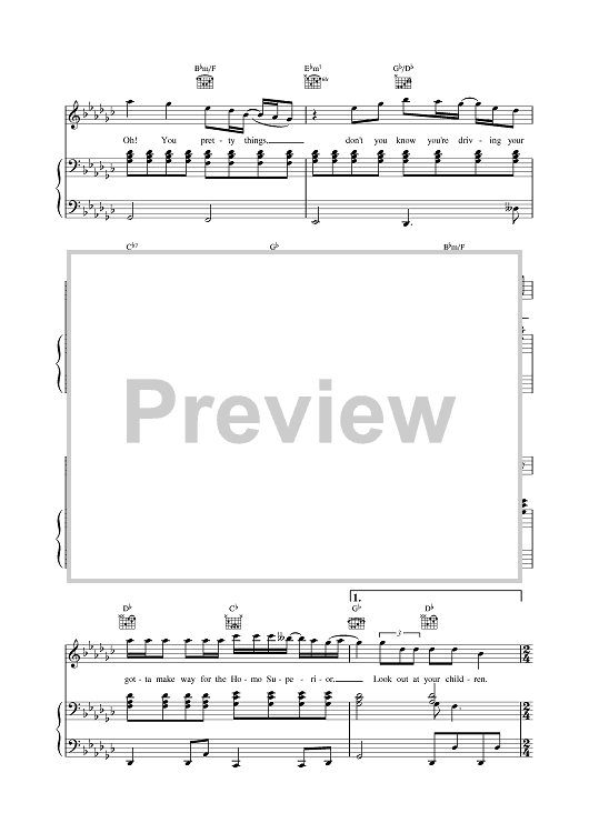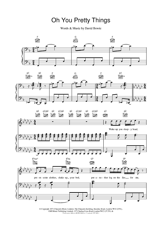Digital Sheet Music for Oh! You Pretty Things by David Bowie scored for Piano/Vocal/Chords; id:376741