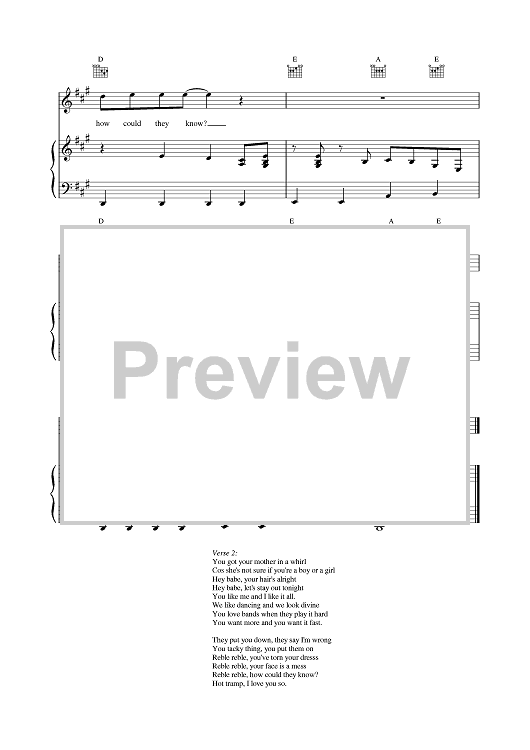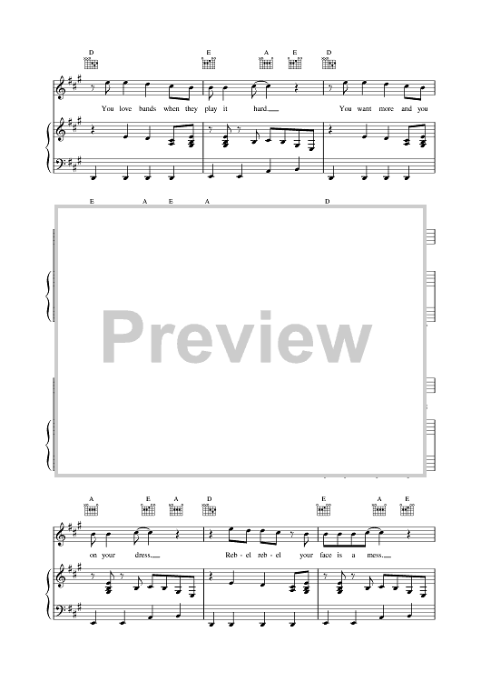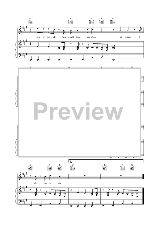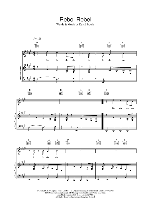 Digital Sheet Music for Rebel Rebel by David Bowie scored for Piano/Vocal/Chords; id:379637
