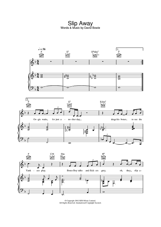 Digital Sheet Music for Slip Away by David Bowie scored for Piano/Vocal/Chords; id:379368