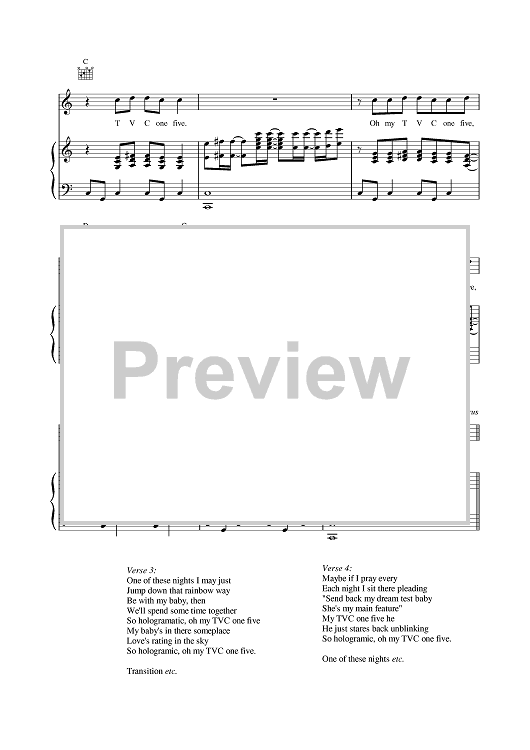 Digital Sheet Music for TVC15 by David Bowie scored for Piano/Vocal/Chords; id:379070