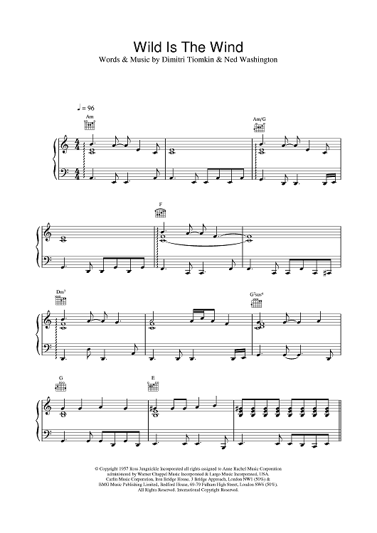 Digital Sheet Music for Wild Is The Wind by David Bowie scored for Piano/Vocal/Chords; id:379069