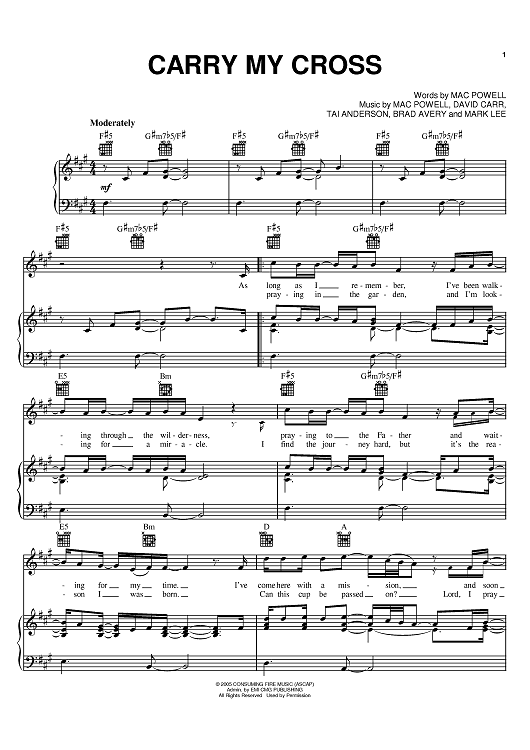 Digital Sheet Music for Carry My Cross by Third Day, Mac Powell, Mark David Lee, Tai Anderson, Brad Avery, David Carr scored for Piano/Vocal/Chords; id:388418