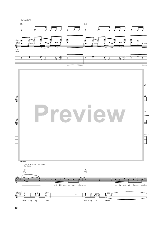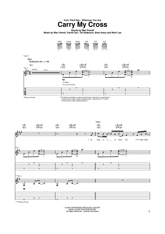 Digital Sheet Music for Carry My Cross by Third Day, Mac Powell, Mark David Lee, Tai Anderson, Brad Avery, David Carr scored for Guitar Tab; id:388576