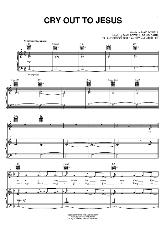 Digital Sheet Music for Cry Out To Jesus by Third Day, Mac Powell, Mark David Lee, Tai Anderson, Brad Avery, David Carr scored for Piano/Vocal/Chords; id:388415