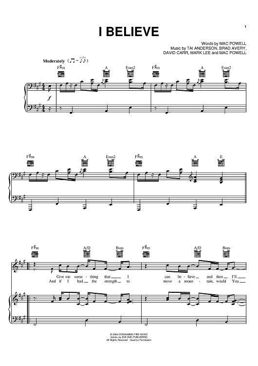 Digital Sheet Music for I Believe by Third Day, Mac Powell, Mark David Lee, Tai Anderson, Brad Avery, David Carr scored for Piano/Vocal/Chords; id:375221