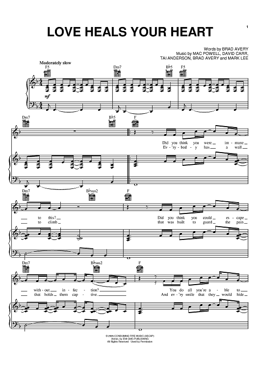 Digital Sheet Music for Love Heals Your Heart by Third Day, Mac Powell, Mark David Lee, Tai Anderson, Brad Avery, David Carr scored for Piano/Vocal/Chords; id:388422