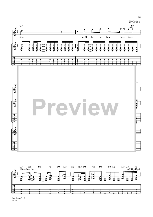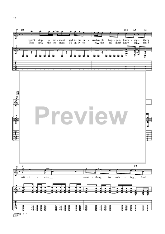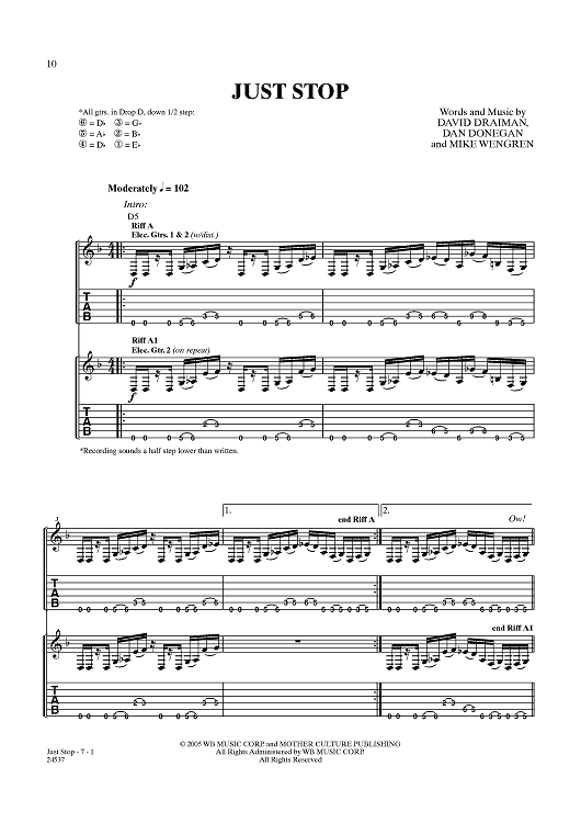 Digital Sheet Music for Just Stop by Disturbed, Mike Wengren, Dan Donegan, David Draiman scored for Guitar Tab/Vocal; id:357790