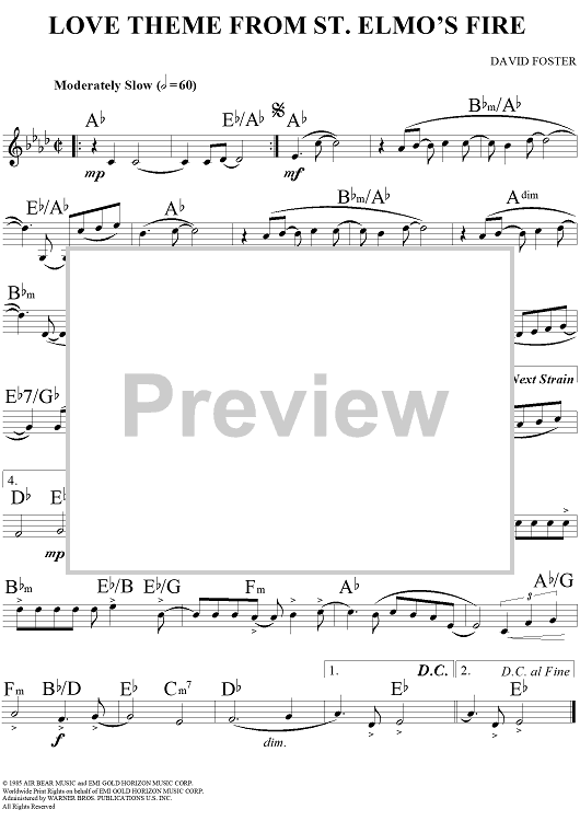 Digital Sheet Music for Love Theme from St. Elmo's Fire by David Foster scored for Lead Sheet; id:109969