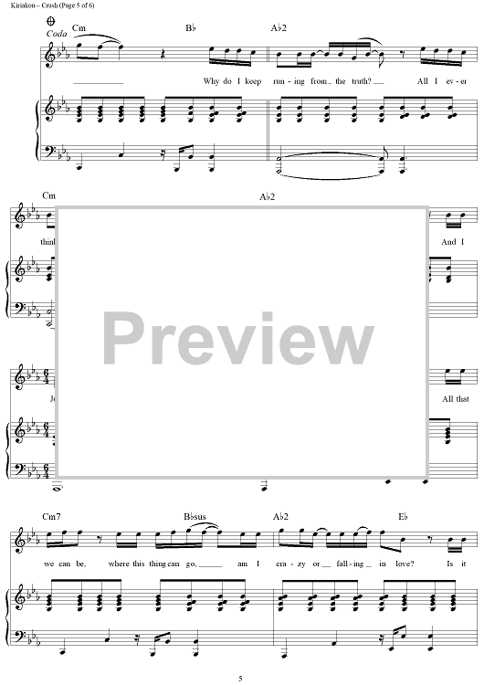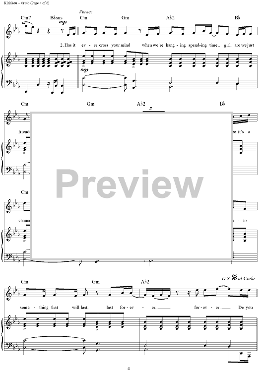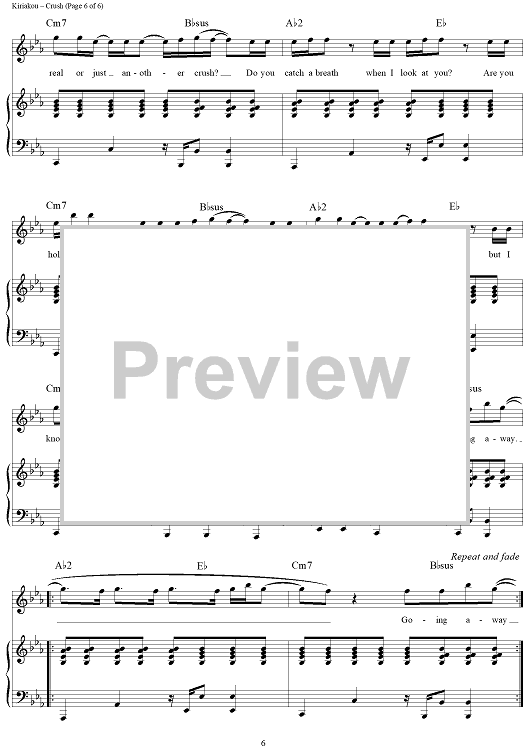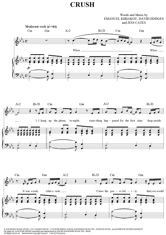 Digital Sheet Music for Crush by Jess Cates, David Hodges, Emanuel Kiriakou, David Archuleta scored for Piano/Vocal/Chords; id:404408