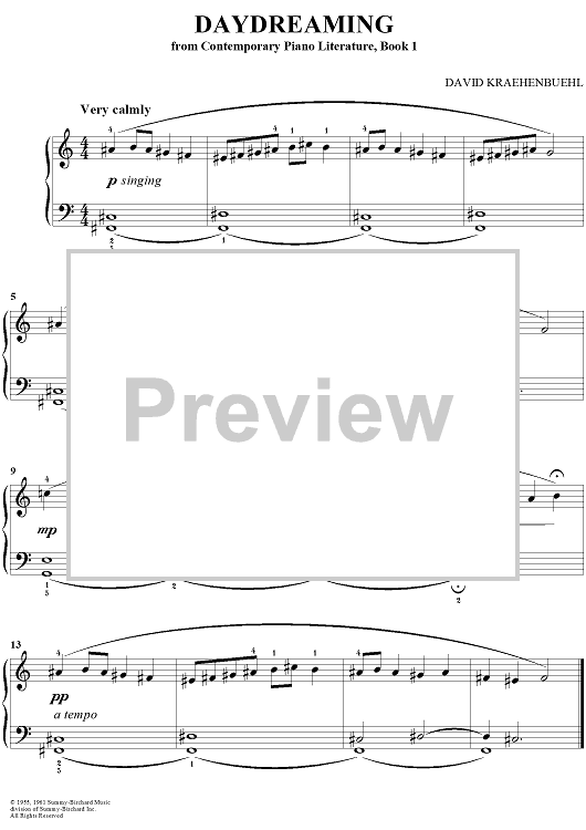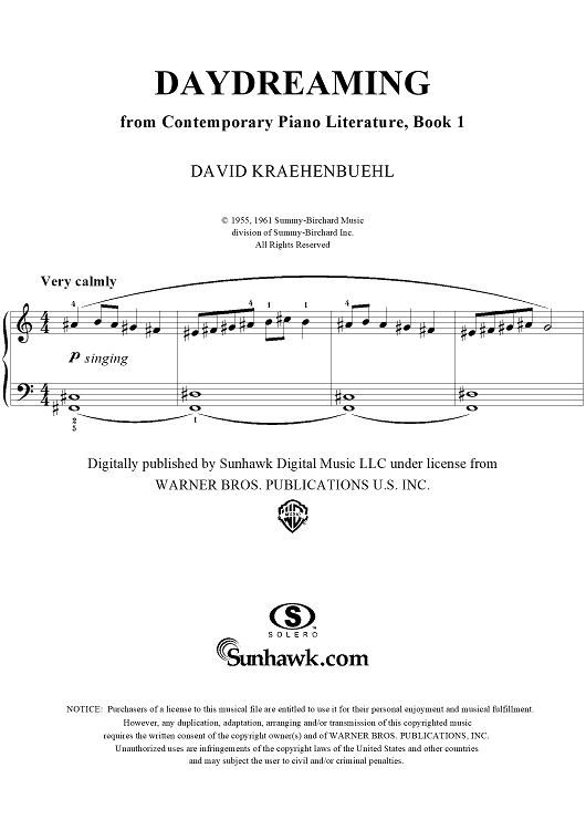 Digital Sheet Music for Daydreaming by David Kraehenbuehl scored for Easy Piano; id:289536