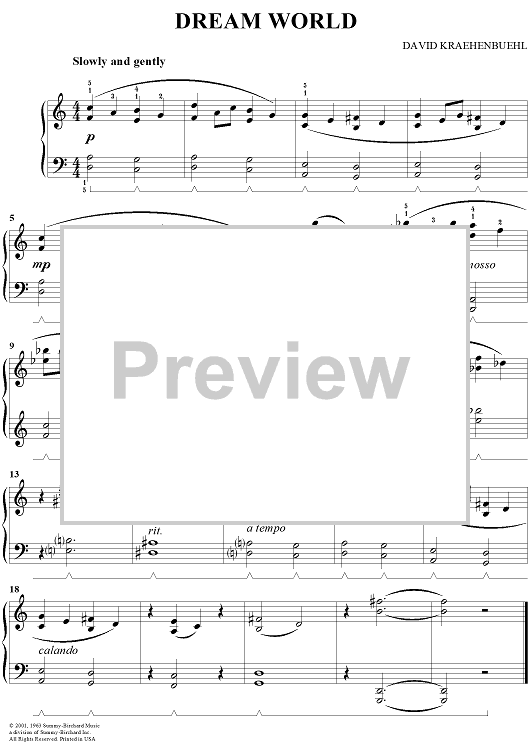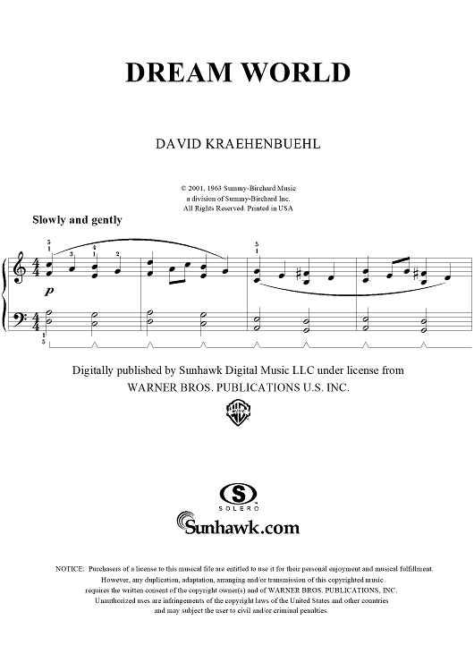 Digital Sheet Music for Dream World by David Kraehenbuehl scored for Easy Piano; id:287421