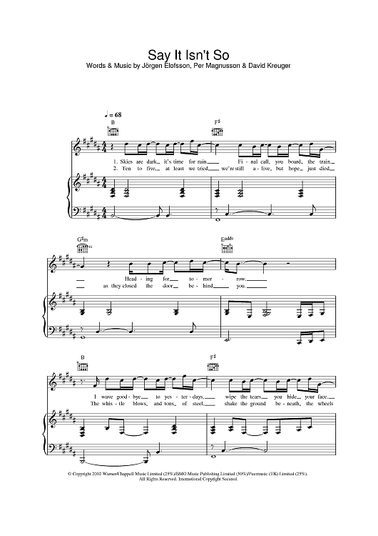 Digital Sheet Music for Say It Isn't So by Jörgen Elofsson, David Kreuger, Per Magnusson, Gareth Gates scored for Piano/Vocal/Chords; id:378417