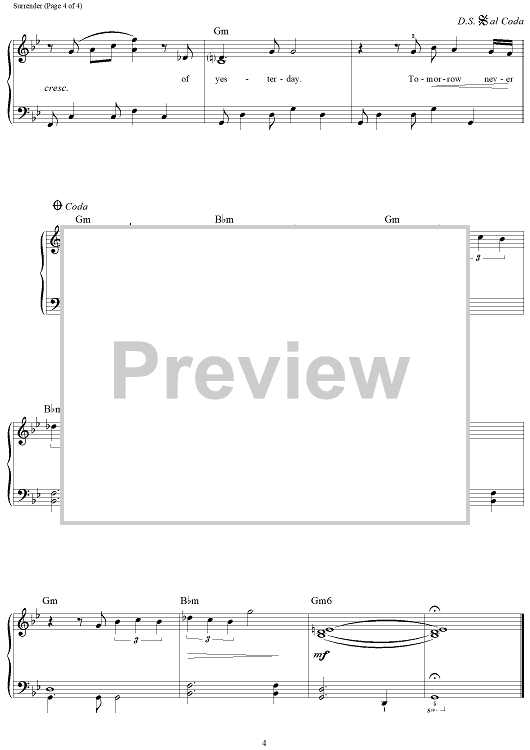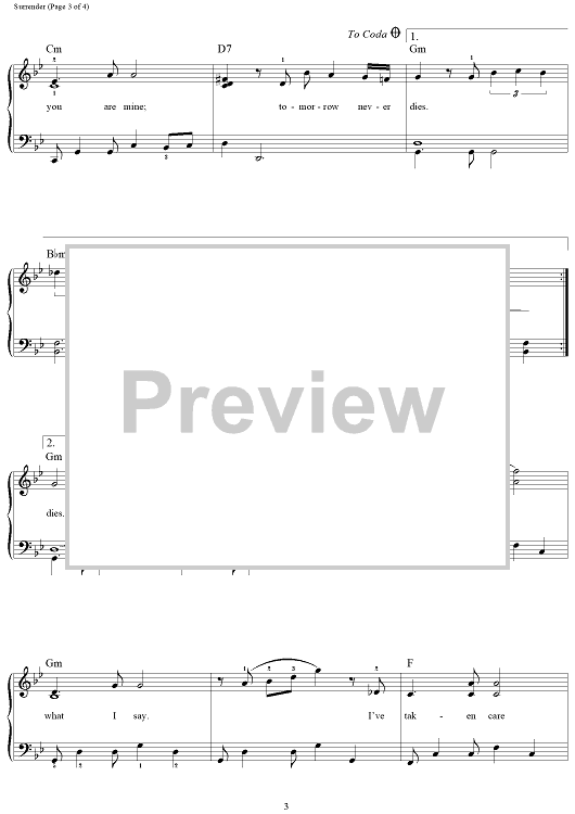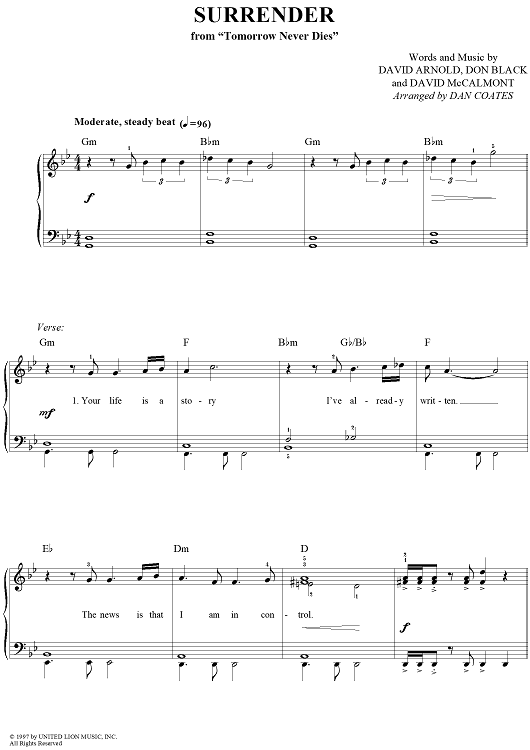 Digital Sheet Music for Surrender by Dan Coates, Don Black, David Arnold, David McCalmont scored for Easy Piano/Vocal; id:283731