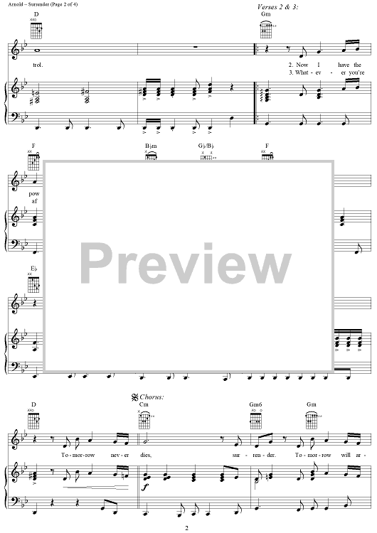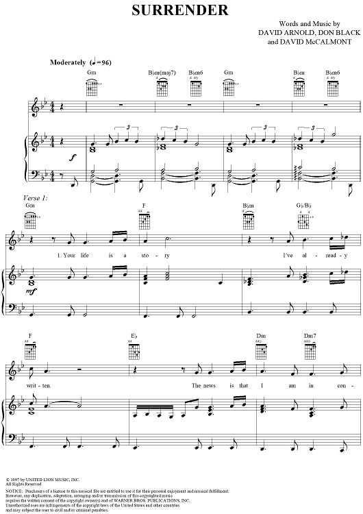 Digital Sheet Music for Surrender by Don Black, David Arnold, David McCalmont scored for Piano/Vocal/Chords; id:288303