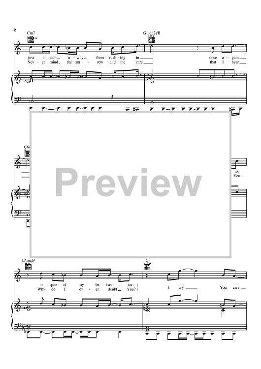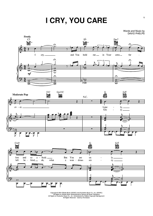 Digital Sheet Music for I Cry, You Care by David Phelps scored for Piano/Vocal/Chords; id:373748