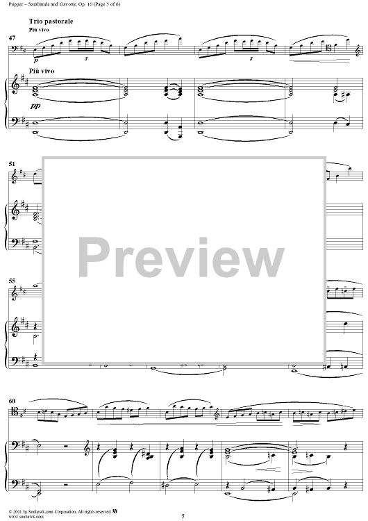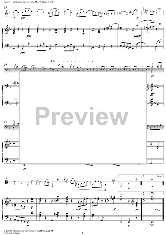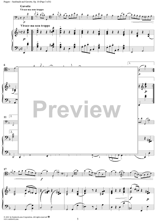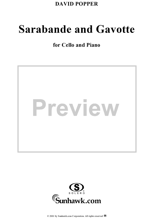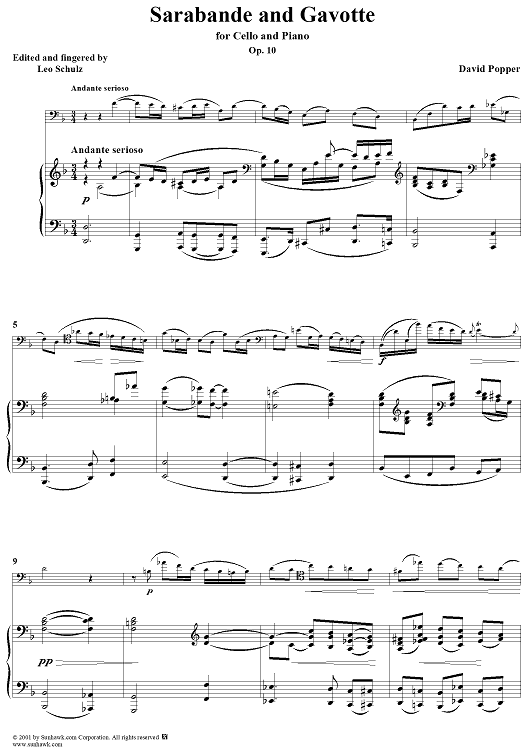 Digital Sheet Music for Sarabande and Gavotte, Op. 10 - Piano Score by David Popper scored for Cello/Piano; id:254399
