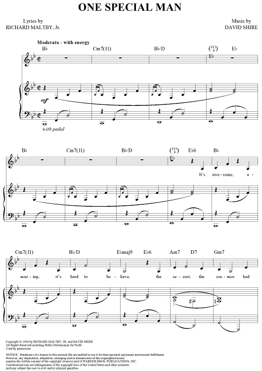 Digital Sheet Music for One Special Man by David Shire, Richard Maltby Jr. scored for Piano/Vocal/Chords; id:313522