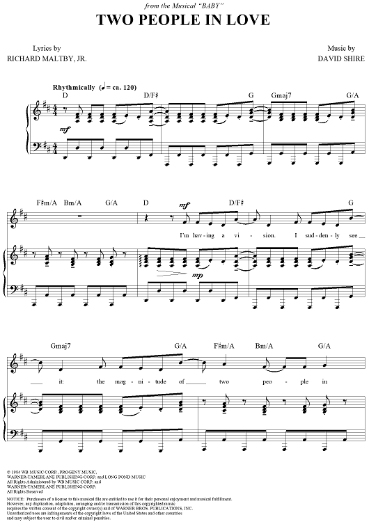 Digital Sheet Music for Two People in Love by David Shire, Richard Maltby Jr. scored for Piano/Vocal/Chords; id:257595