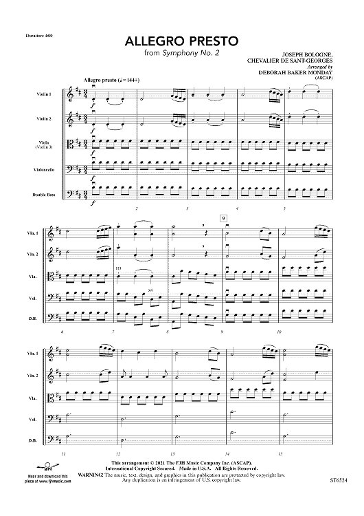 "Allegro Presto from Symphony No. 2 - Score" Sheet Music by Joseph Bologne