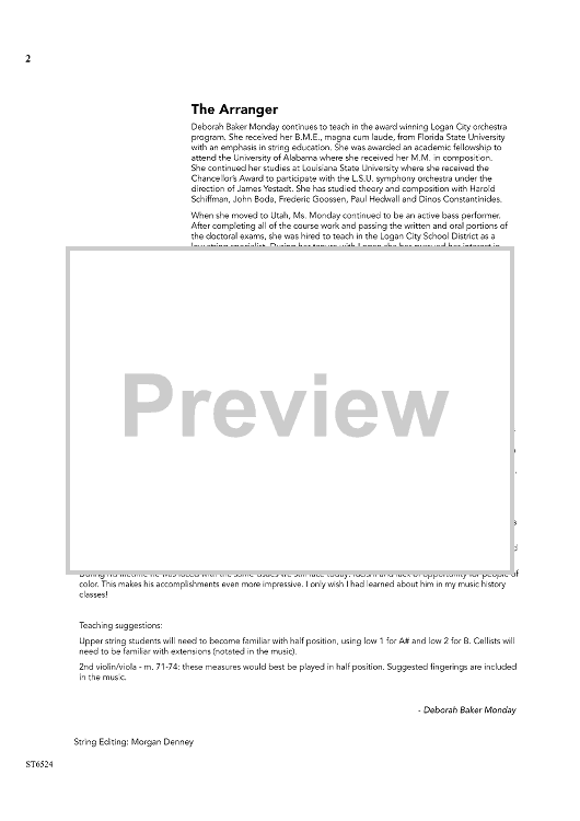 Spotlight one of the first known classical composers of African ancestry with this incredible arrangement showcasing the music of De Saint-Georges, a Black contemporary of Mozart. Born the son of a slave and white plantation owner, he became a master fencer, violin virtuoso, conductor and composer. This vibrant and energetic movement from his second symphony is an amazing choice for any program! (4:00)