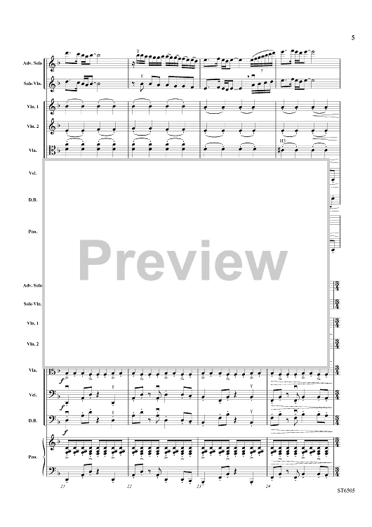 "Deliberate Diversions for solo violin and string orchestra - Score" Sheet Music by Camille Saint-Saëns